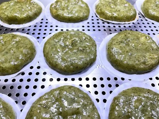 清明粑由清明菜、糯米和粘米按一定比例混合,捣碎或磨碎后与水混合揉成圆顶状蒸成,馅料常为老红糖、引子和碎花生合成,也有豆沙馅等,可铁板烙或清蒸。