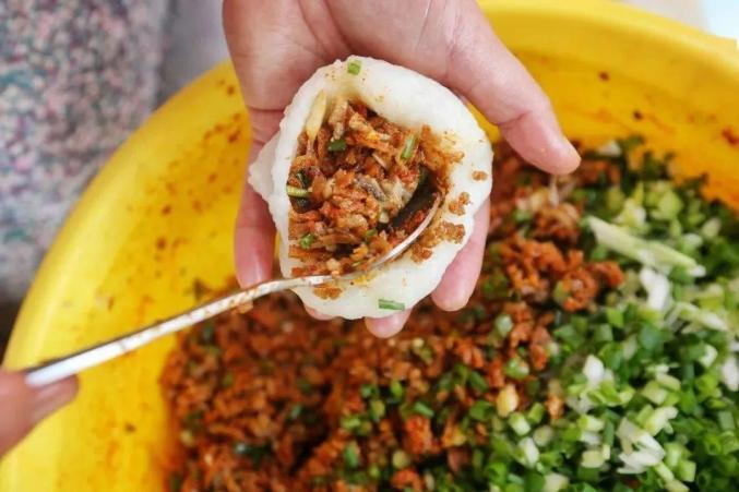 清明节前后最为常见特色美食,用茅香的嫩芽和糯米、粘米粉按比例混合,揉团蒸熟,里面包上酥麻引子,或烤或烙,清香可口。