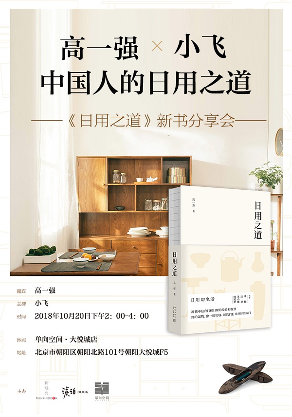 10月20日,著名设计师、策展人、“日用之道”创始人高一强,著名主持人小飞,做客单向空间,谈一谈他们眼中的中国人所用的器物背后的生活美学。