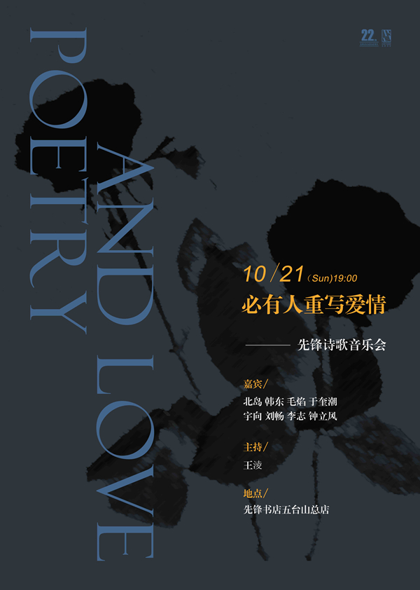 北岛在《我们》一诗中写到,“寻找听众,寻找冬天的心/河流尽头,船夫等待着茫茫暮色/必有人重写爱情。”在10月21日,北岛、韩东等诗人相聚在先锋书店,带来一场关于爱情的诗歌盛宴,更有音乐人李志和钟立风倾情参加,一起分享关于爱情的那些事。