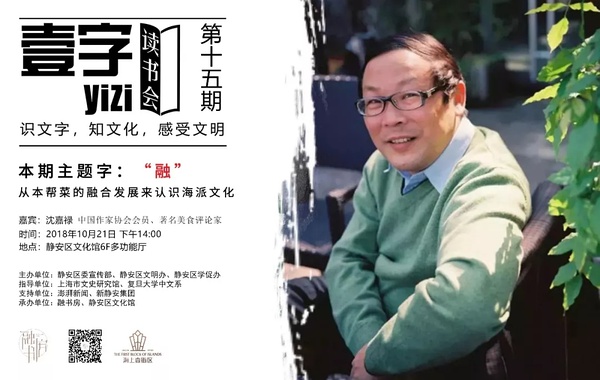 用一个词语概括上海的话,我最先想到的是——好吃。上海看似不是唯一能匹配“好吃”这个头衔的。姑苏“好吃”,金陵也“好吃”;蓉城“好吃”,羊城更“好吃”。北边,山西、陕西不好吃吗?新、蒙牛羊不好吃吗?但是不管你举出多少个栗子,要说有故事、有人情味儿,其它美食和本帮菜就不可相提并论了。本月壹字读书会的主题,就是从本帮菜的融合发展来认识海派文化。而说到本帮菜的专家,上海老饕沈嘉禄自然是当之无愧的嘉宾啦!