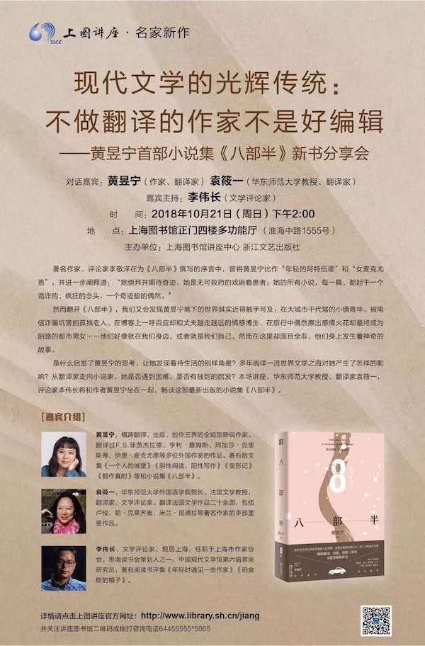 上海│现代文学的光辉传统:不做翻译的作家不是好编辑——黄昱宁首部小说集《八部半》新书分享会