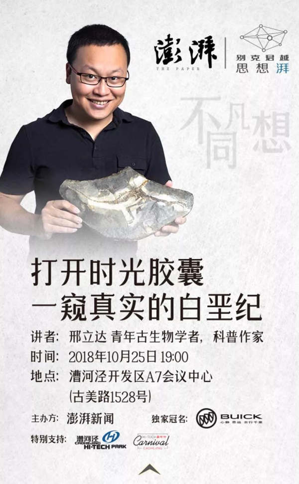 邢立达,青年古生物学者、科普作家,师从Philip J. Currie(电影《侏罗纪公园》主角原型)、徐星等知名恐龙学者。2016年发现了琥珀中的古鸟和恐龙,成为当年全球最受媒体关注的科学发现之一。他主要研究恐龙等脊椎动物,发表科研论文百余篇,是李四光优秀学生奖、银锤奖的获得者。其出版与翻译了近百本古生物科普书籍,并多次在CCTV、美国国家地理等频道为公众介绍古生物知识。10月25日思想湃,邢立达邀你一同打开时光胶囊,一窥真实的白垩纪。