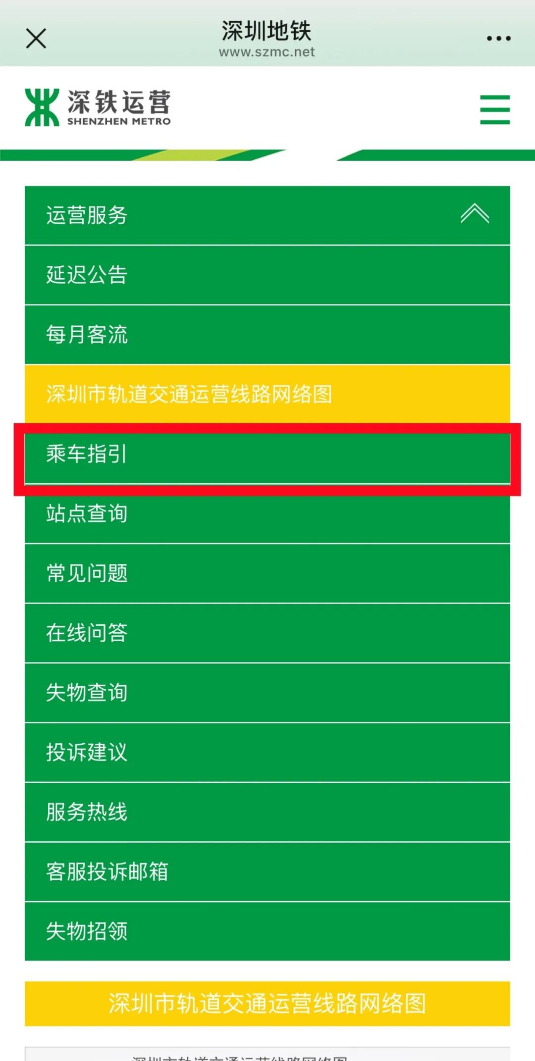 选择“乘车指引”