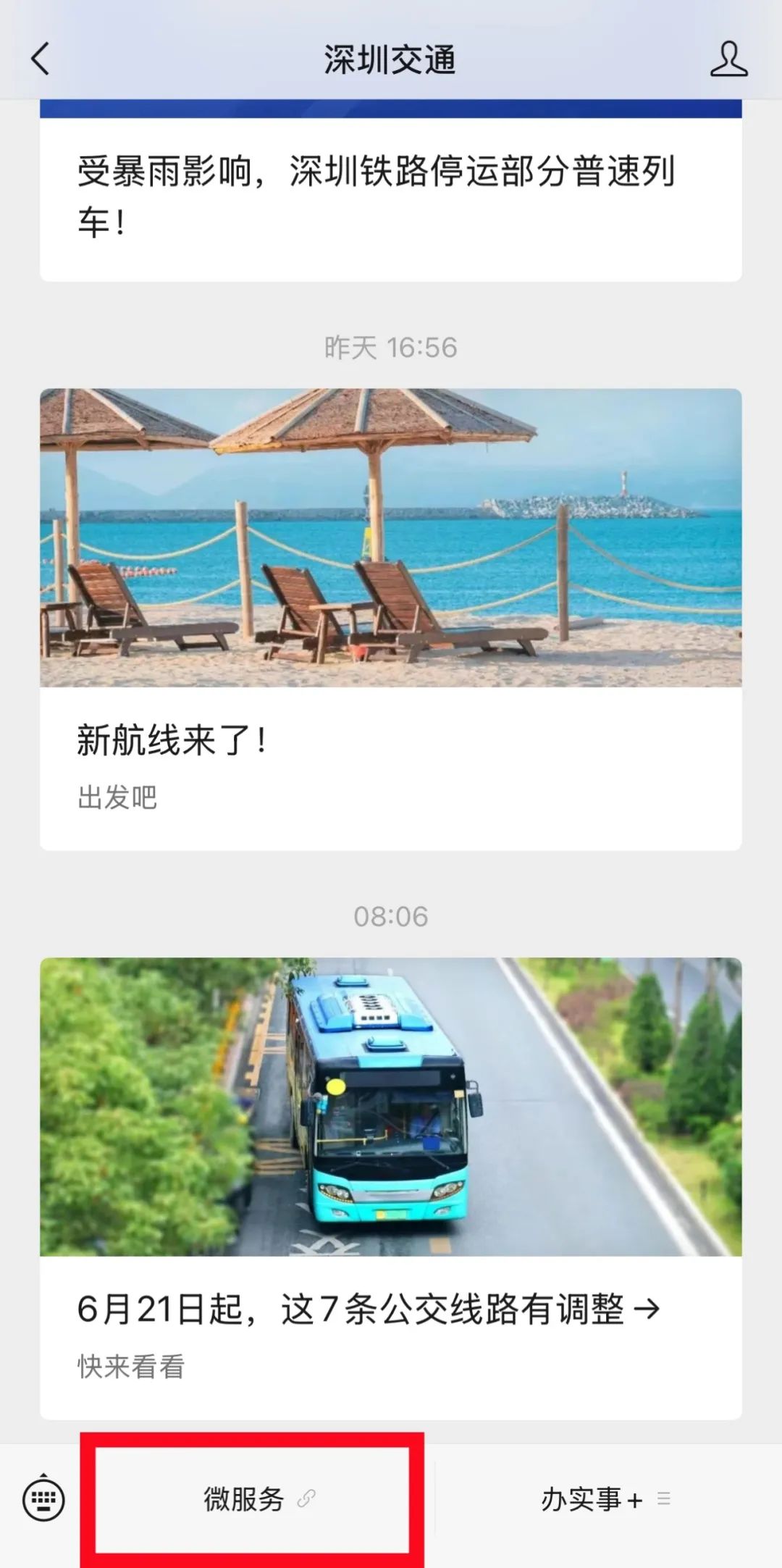 “深圳交通”公众号聊天框