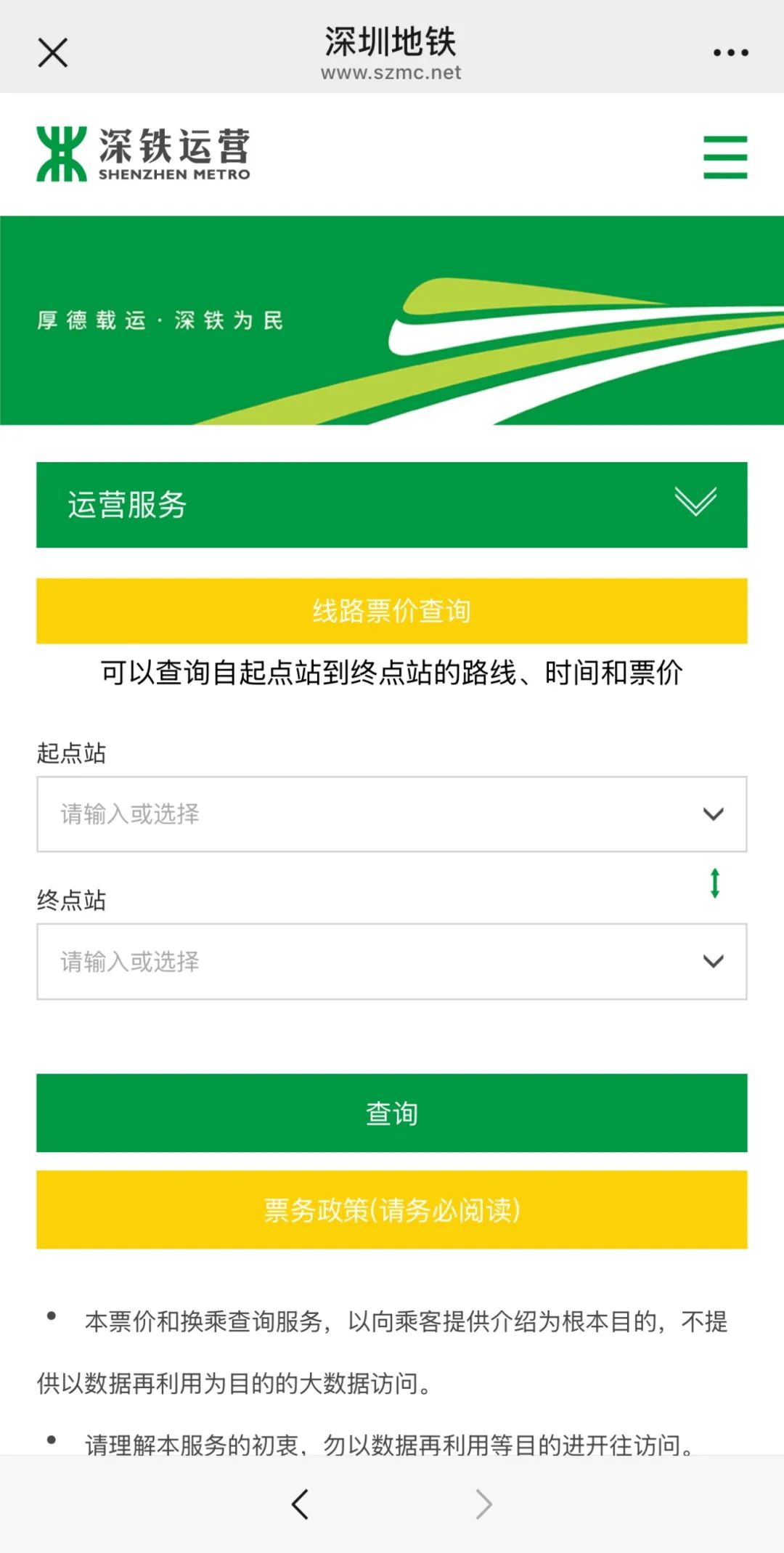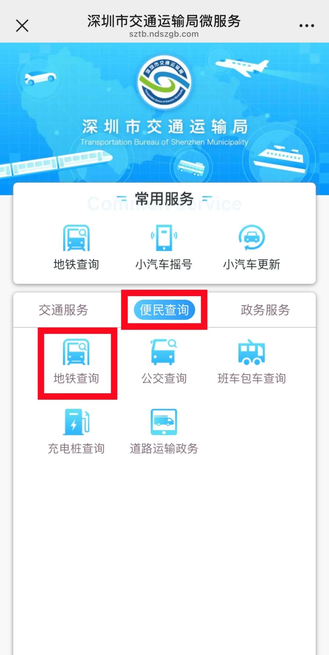 选择“微服务”→“便民查询”→“地铁查询”