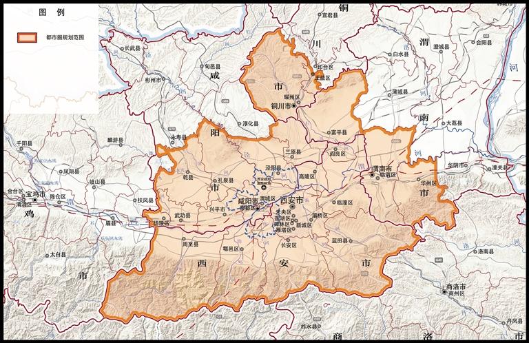 西安都市圈是城市群内部以超大特大城市或辐射带动功能强的大城市为中心、以1小时通勤圈为基本范围的城镇化空间形态。