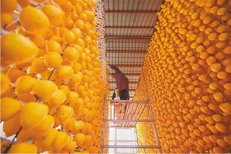 如今,从柿子醋、柿子酒,到柿叶茶、柿子酵素,再到柿文化体验馆、曹村柿子风情小镇……一颗颗柿子,让“农业强、农村美、农民富”的美好愿景照进现实。
