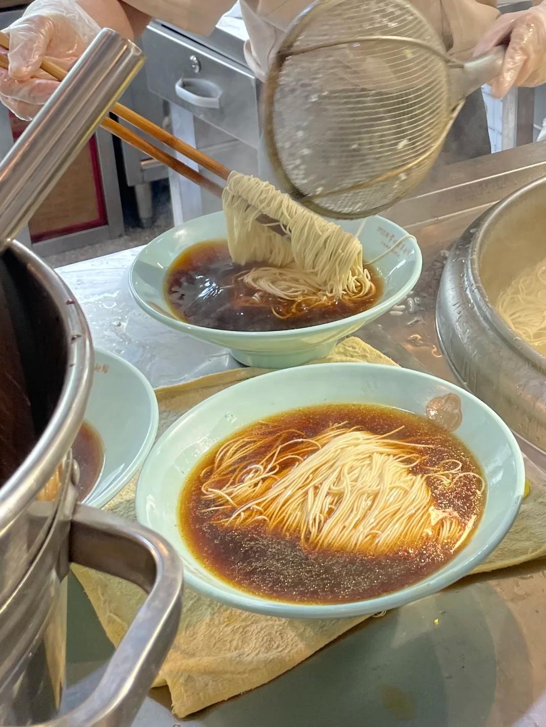 面要纤细筋道,汤是精心熬煮,哨是花样浇头,热是碗热、面热、汤热、浇头热,嗦一口银丝面,就格外熨帖。