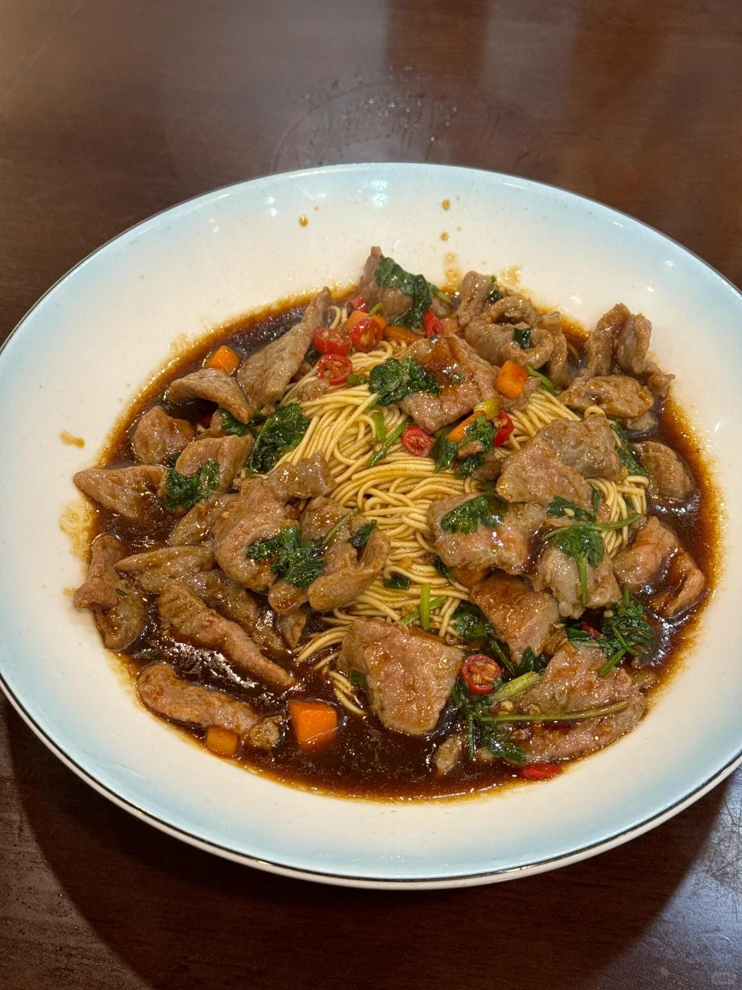 还有香菜牛肉,牛肉、香菜两位都是主角,讲究一个“嫩”。两位主角还得相得益彰,不去抢戏,这就彰显厨师。