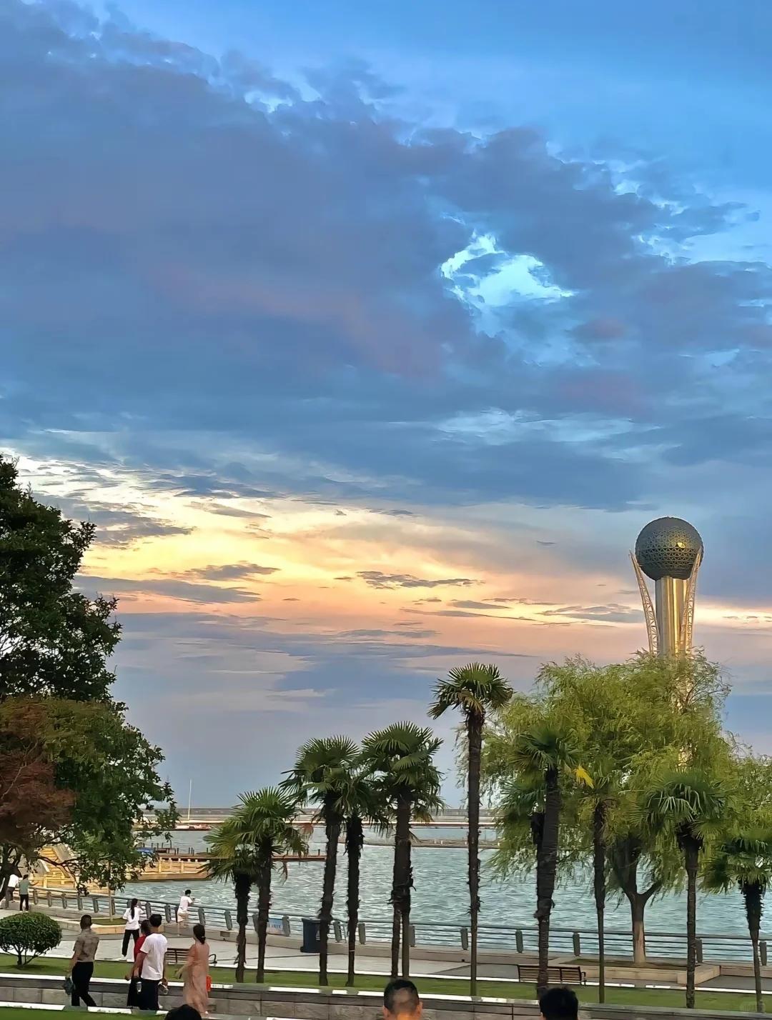 你可以去逛逛揽月湾,去穿过那成片的繁茂椰林,去远眺耸立于湖面的观光塔,去松软的草坪露营野餐……仿佛一秒来到了济州岛。