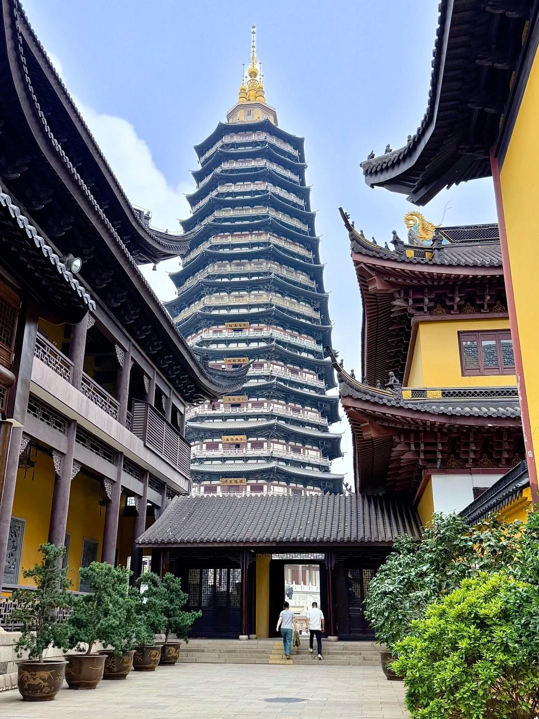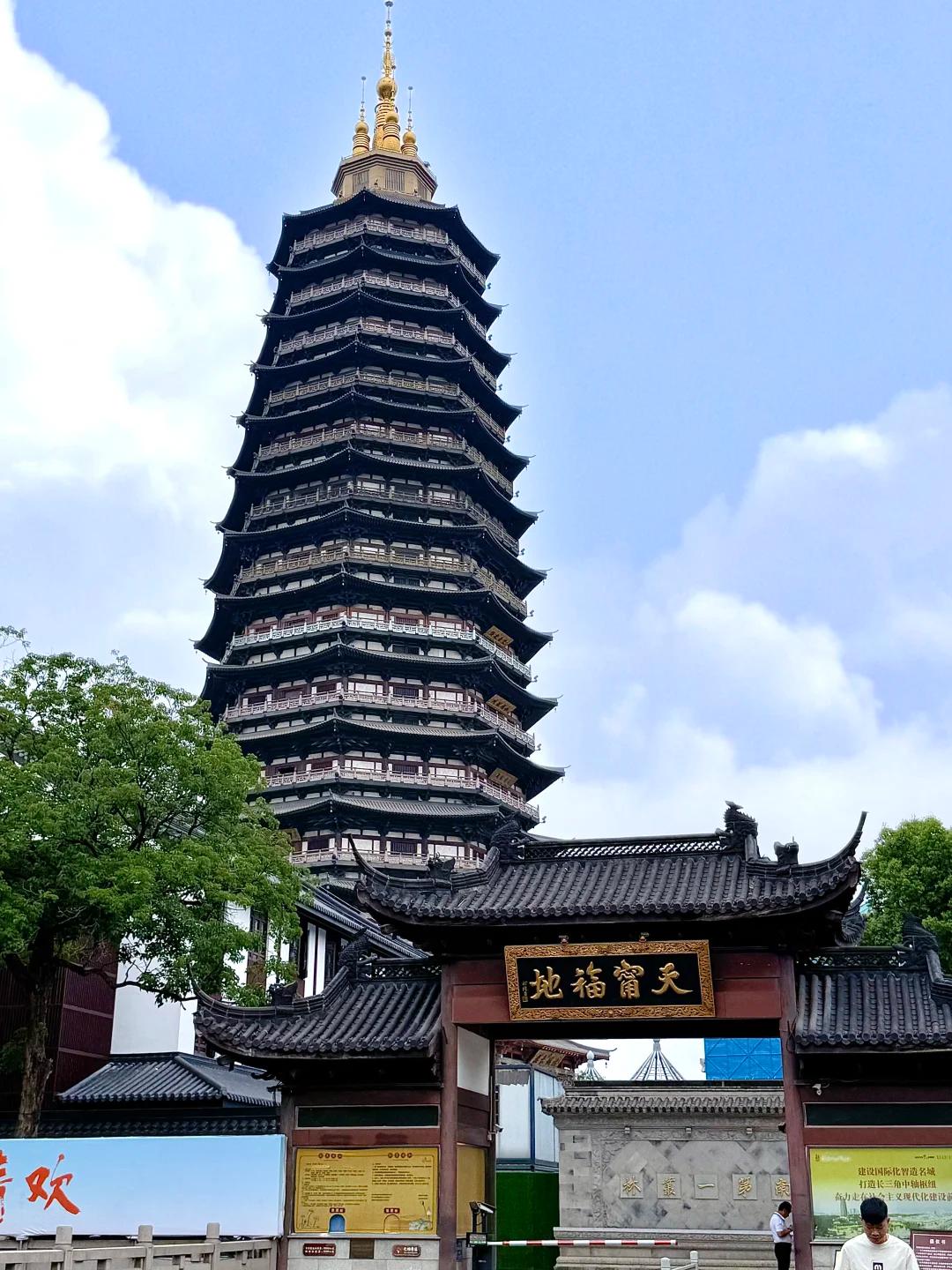第一眼望见的,便是高高耸立的天宁宝塔,相传它是世界上最高的宝塔,在暖阳下,闪着灼灼的金色辉芒,自带一种神圣和庄严之感。
