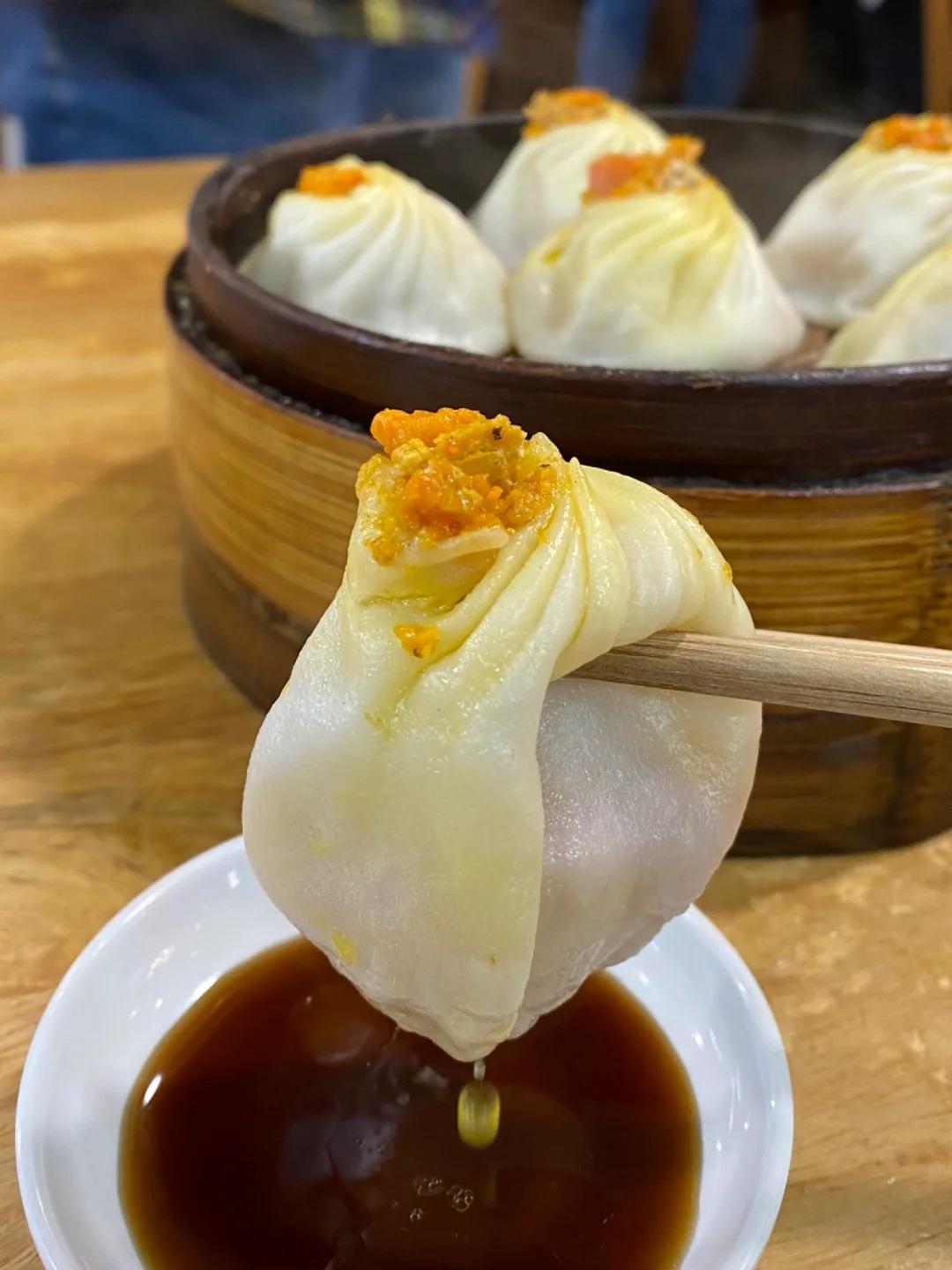 尤其是顶黄小笼包最为出名,蟹黄饱满油亮,肉馅咸鲜可口,吃起来很是满足。