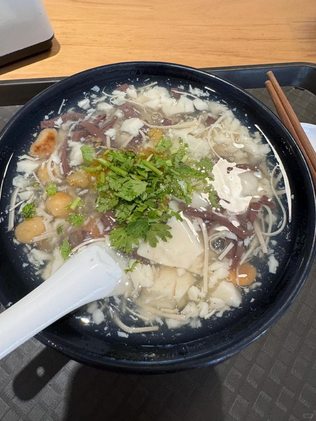 藏在居民楼里,推荐他家的酸辣鸭血汤,豆斋饼是点睛之笔,吸足了汤汁,酸辣过瘾,还有肥肠豆腐也好吃。