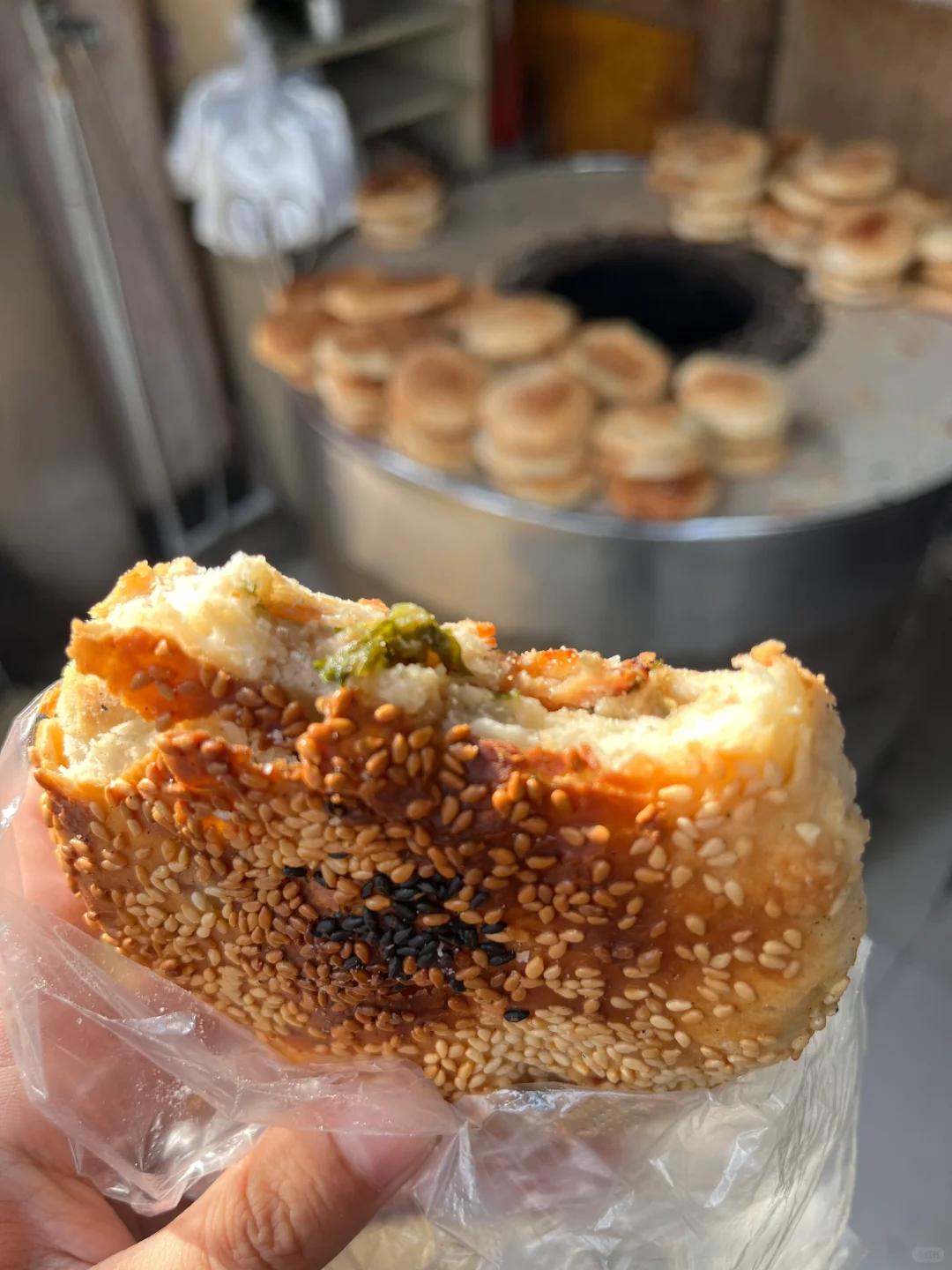 虽然被叫作糕,其实有些像烧饼,但是比烧饼更酥香,更焦脆。