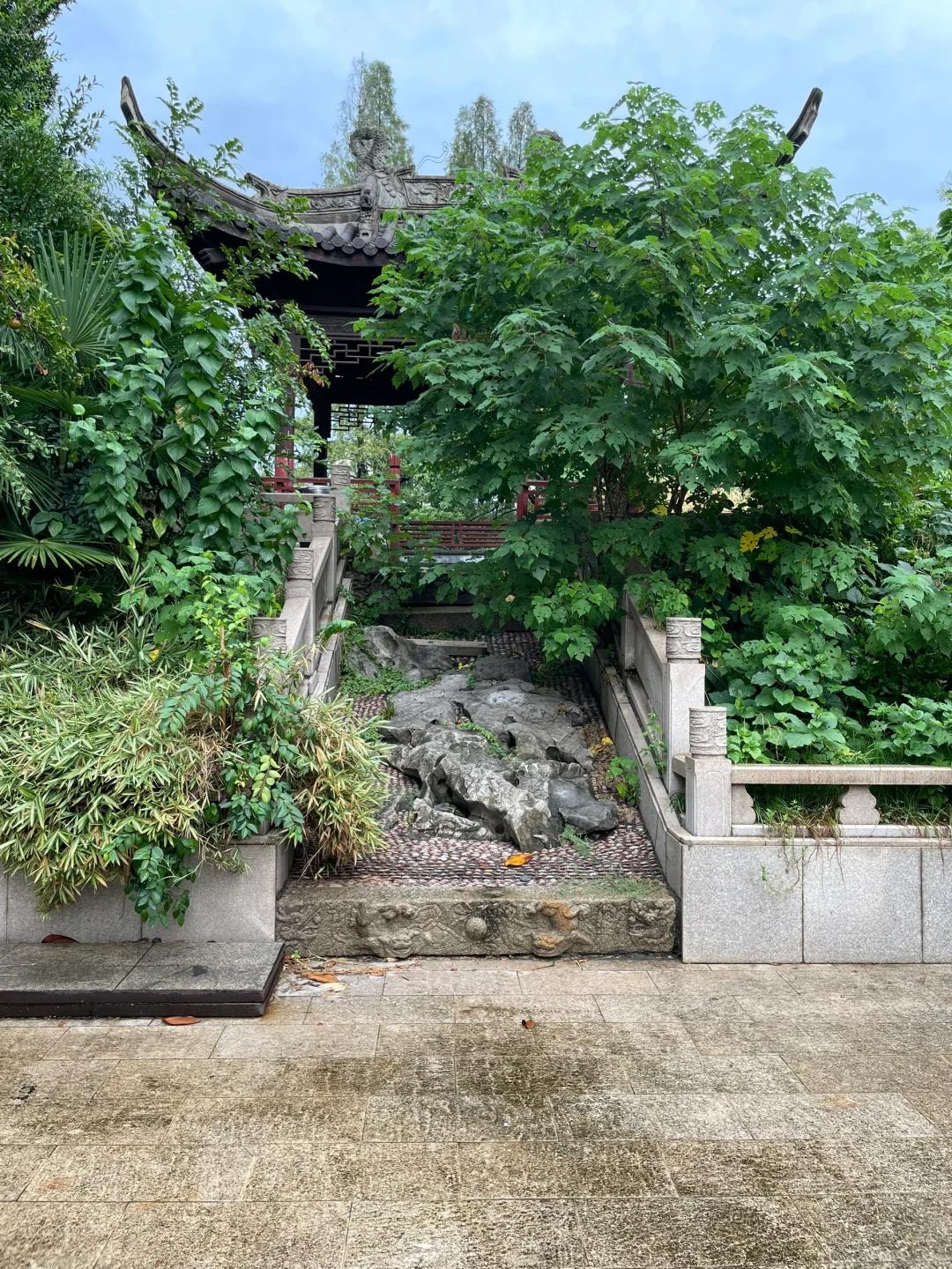 穿梭在狭长的小径间,偶遇四面透空的滴翠轩,回廊重叠的四宜厅,倚栏临池的乐鱼榭,还有一株株百年古树,婆娑多姿,古雅清幽……