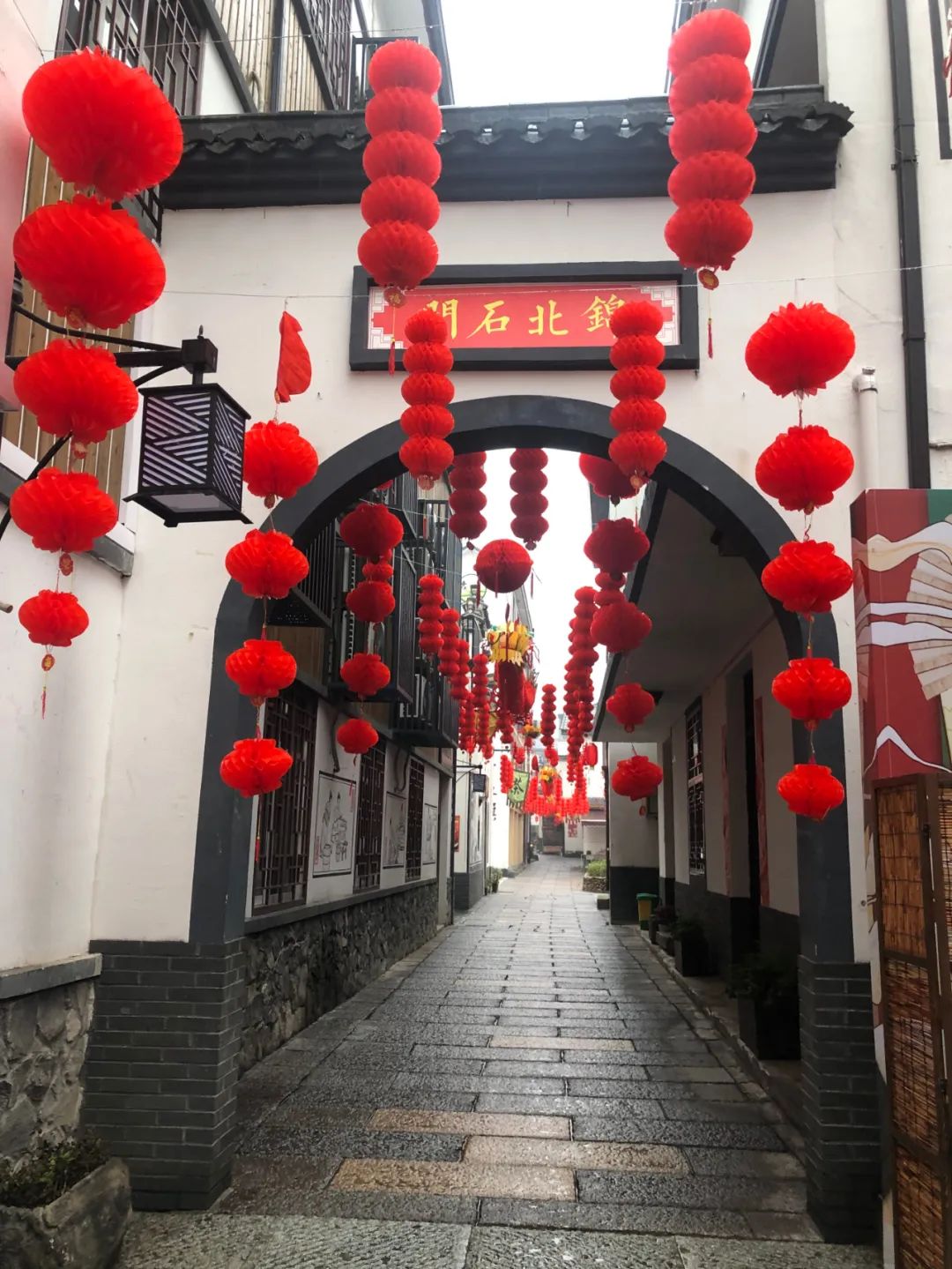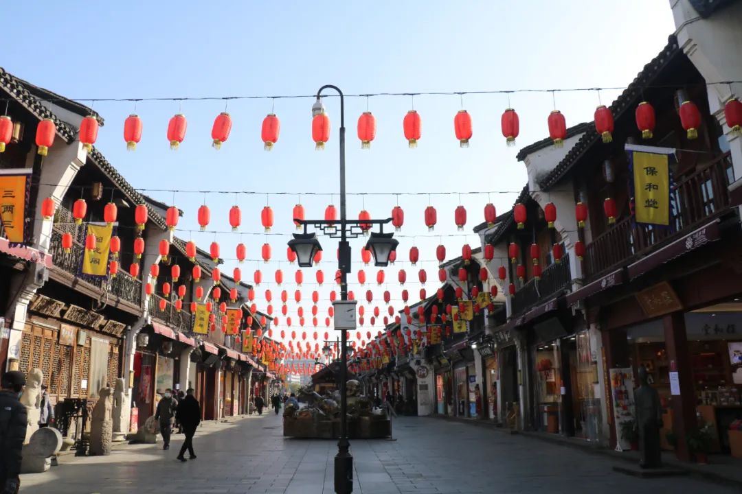 春节临近,河坊街上的年味渐浓,处处挂起了大红灯笼。