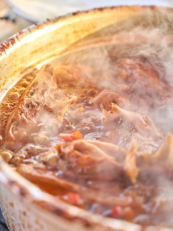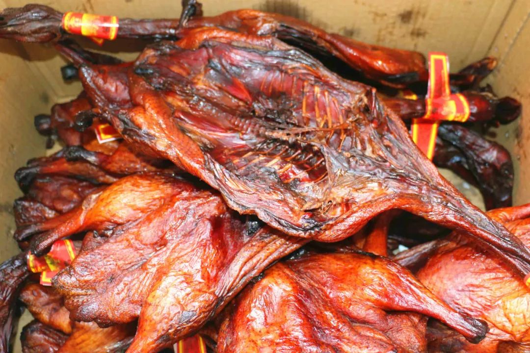 早晨,街区游客寥寥,大多数是赶来打年货的“老杭州”,龙须酥、景阳观酱菜、最热闹的还要数拥有着140年历史的万隆火腿。酱肉、香肠、南肉堆满货架,酱鸭、咸鱼、凤鸡悬挂在橱窗里,阳光下锃锃发亮、滋滋冒油。