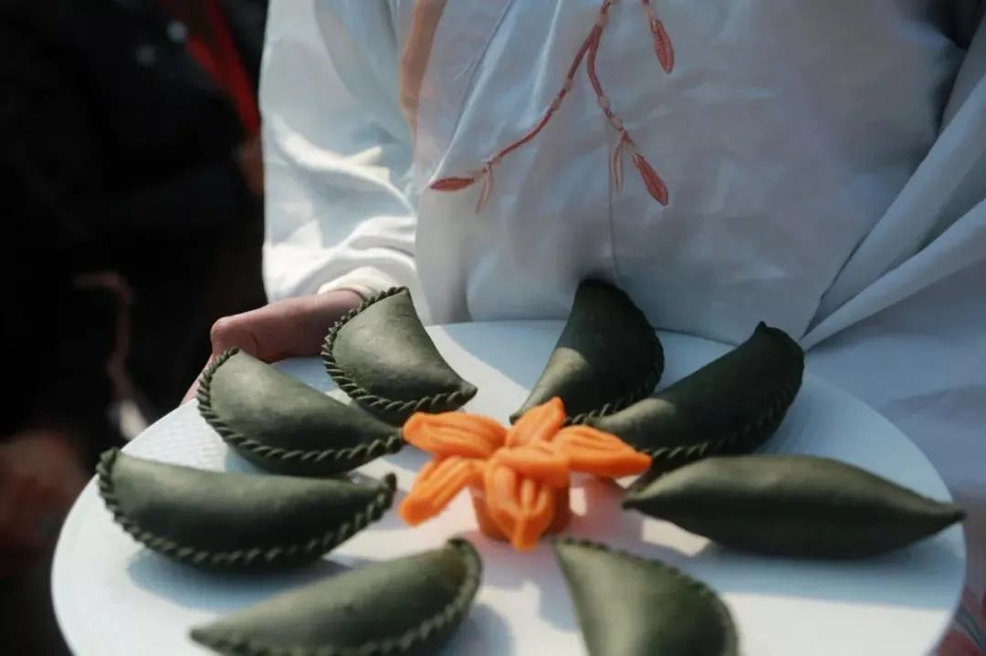 米粿是桐庐地区传统风味小吃之一,一直以来都是农家地地道道的纯手工制作。米粿外观洁白如雪、皮层软糯清香且稍有韧性,配上咸鲜可口的菜馅,入口分外鲜辣甘香。