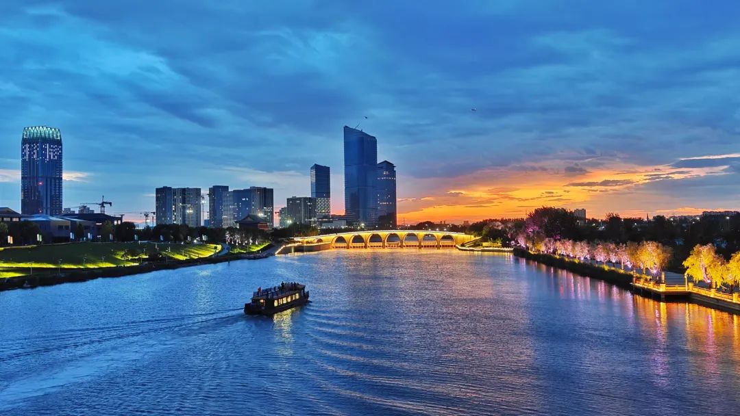 这里已实现18公里滨水绿道贯通和6公里旅游通航,串起“1河2湖24桥18景”。夜间游览时,沿线建筑、桥梁、河岸灯带会被点亮,可欣赏美轮美奂的灯光秀。