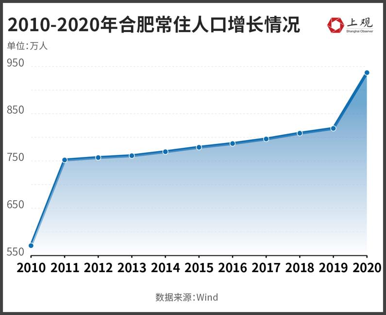 合肥近年来的快速发展,得到了老百姓的用脚投票。近十年,合肥的常住人口增长显著,从2010年的570万增长至2020年的超936万,即将迈入千万人口的大关。