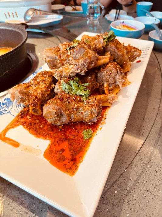 在羊瑞堂,陕北菜不仅是味道,更是一场视觉与文化的盛宴。招牌铁锅炖羊肉沿袭古法工艺,铁锅慢炖锁住营养与风味,汤底浓醇却不浊口,喝一口从胃暖到心尖。而长安葫芦鸡则重现唐代官府宴席的荣光,清煮、蒸笼、油炸三道工序层层递进,鸡肉脱骨软烂,形似葫芦,咬开酥皮,热腾腾的汁水在口中迸发,令人回味无穷。就连看似简单的油泼榆林豆腐,也暗藏匠心——选用榆林老豆腐,油泼辣子的香气与豆腐的紧致口感交织,酸辣开胃,瞬间唤醒食欲。