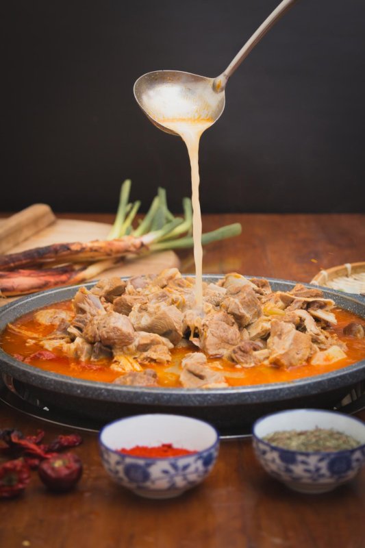 羊瑞堂的秘诀,藏在陕北横山的辽阔山地草场上。这里的小公羊以地椒草为食,肉质自带草本清香,高蛋白低脂肪的黄金比例,让每一口都脂香四溢却不腻口。餐厅坚持选用八个月大的羔羊,正是肉质最细嫩的黄金时期,经数小时地椒慢炖,羊肉的腥味被温柔化解,只留下醇厚的鲜香在舌尖绽放。无论是铁锅炖羊肉的温润入味,还是烤羊排的焦香爆汁,都让人惊叹:原来羊肉竟有如此极致的滋味。