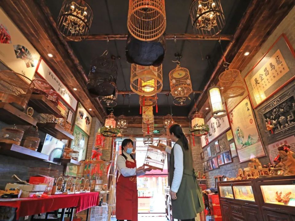 踏入西门里大街,即墨麻片酥脆香甜,黄氏烙画、官庄竹编、大欧鸟笼等非遗手造,尽显匠人精湛技艺。