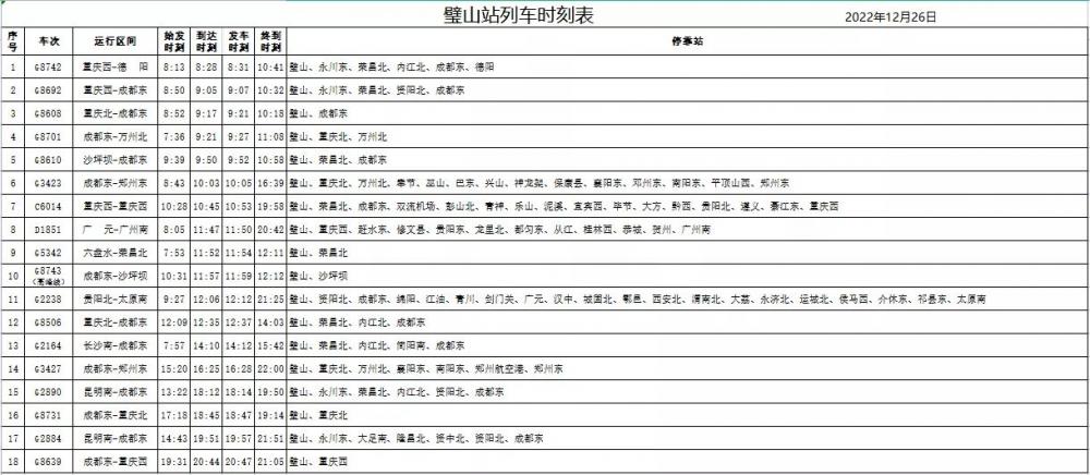 璧山站列车时刻表