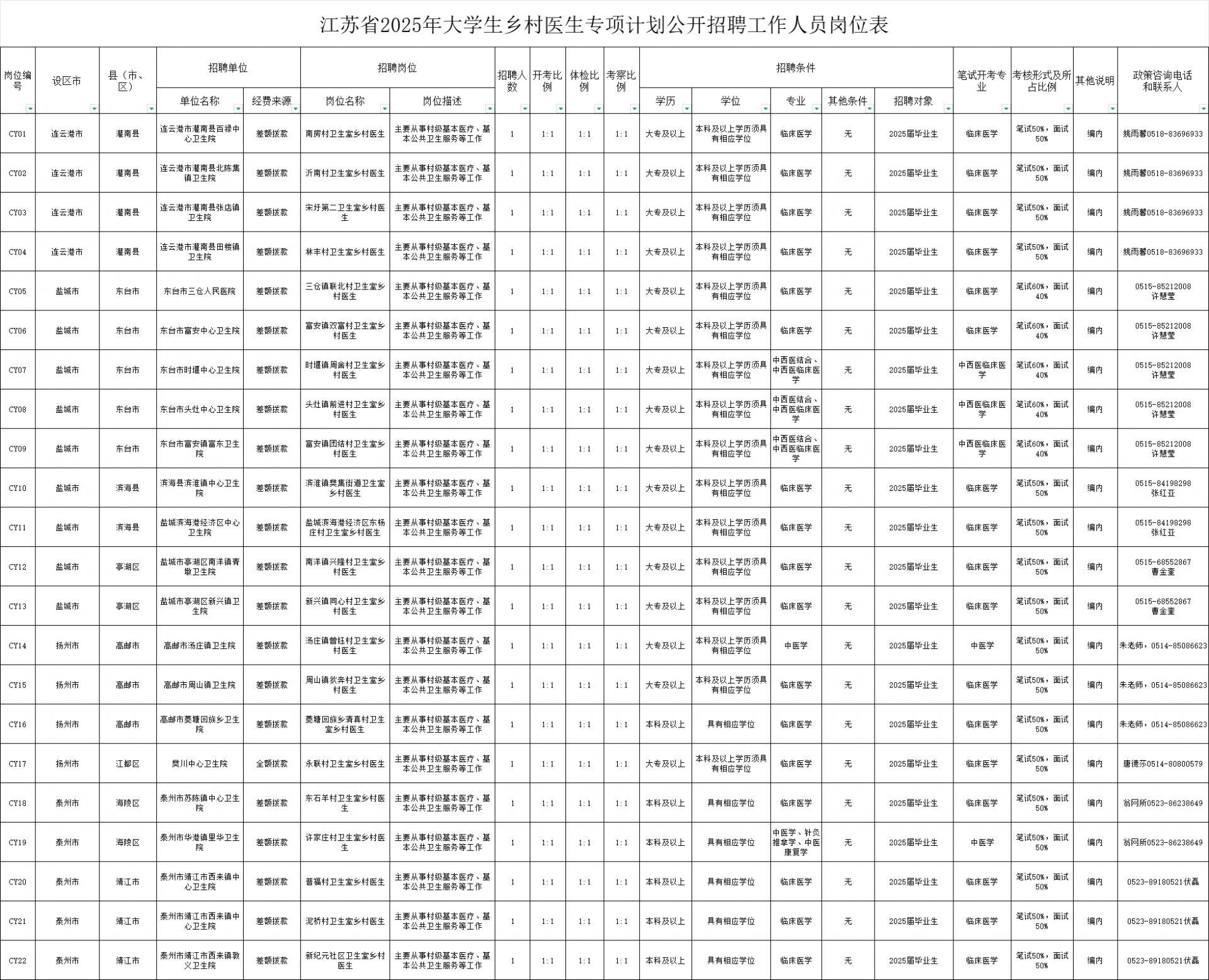 江苏省2025年大学生乡村医生专项计划公开招聘工作人员公告
