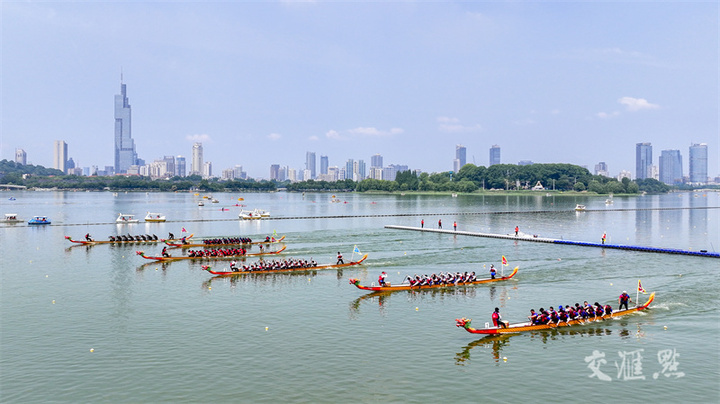 2024年6月8日,2024年企联龙舟赛在南京玄武湖举行,参赛队员在湖面上奋力划桨争先。史俊摄 视觉江苏网供图