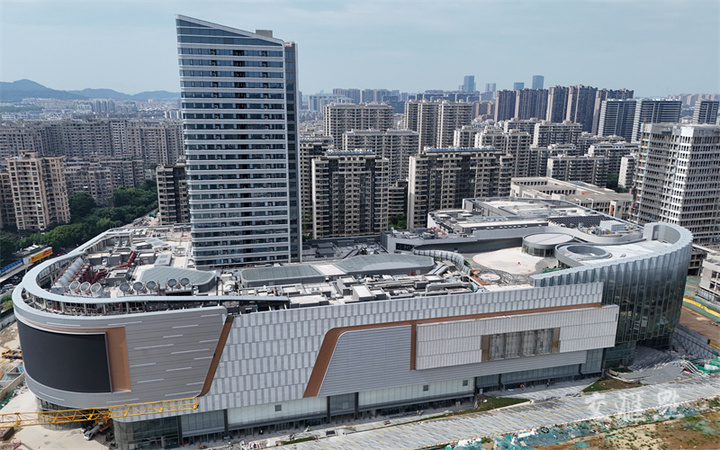 2024年7月16日,航拍全面竣工的南京市玄武红山新城招商花园城商业部分。该项目以船、帆、海浪为设计理念,打造成有垂直式空间布局、室内星空花园、城市生态活力廊道等天文和生态融合的主题购物中心。新华日报·交汇点记者 吴俊摄