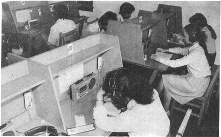 1989年7月14日,读者在南京图书馆外语视听室认真学习。王扬摄