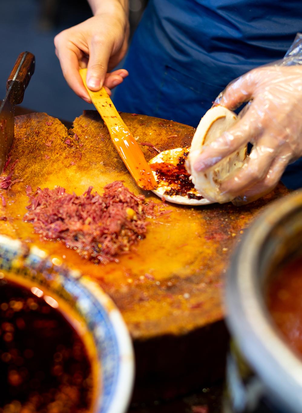 浇一勺肉汁,是肉夹馍提香的秘诀。