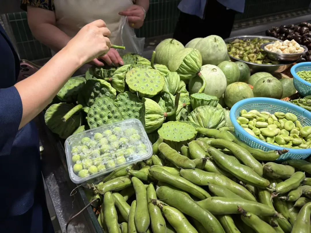 东山弄市集的二楼,有不少摊位都摆上了莲蓬。