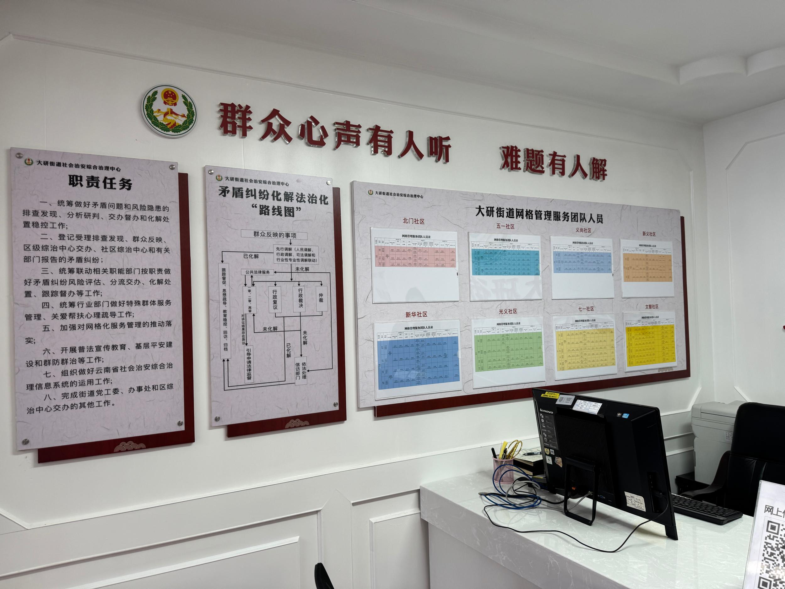 大研街道秉持“同住一座城、共织一张网、和美一家人”理念,以网格化服务管理为核心,深化综治中心规范化建设。
