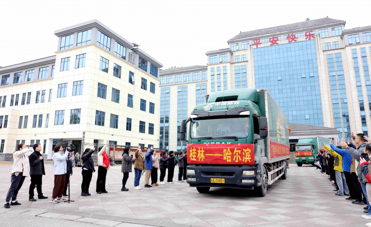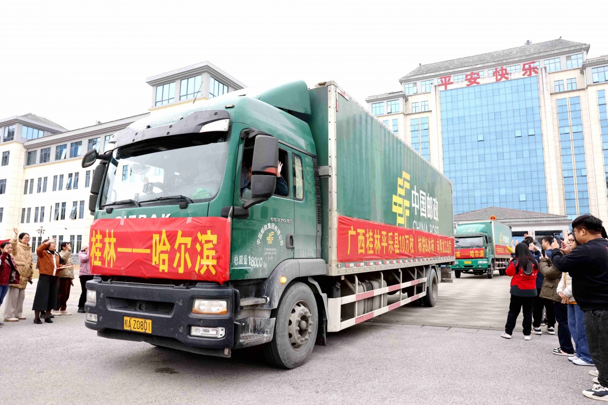 8日上午,平乐县农业、邮政、爱心企业等相关部门300多名代表齐聚发车现场,为此行东北的物流车送行,为东北的老铁们捎去问候。