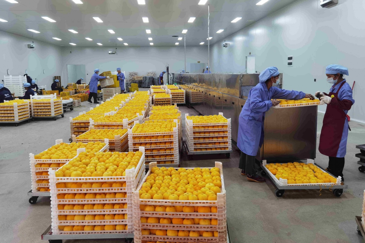 ▲工人在生产平乐冰柿。记者 邓振福 摄