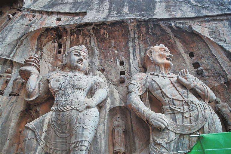 龙门石窟奉先寺雕刻精美的天王像与力士像。