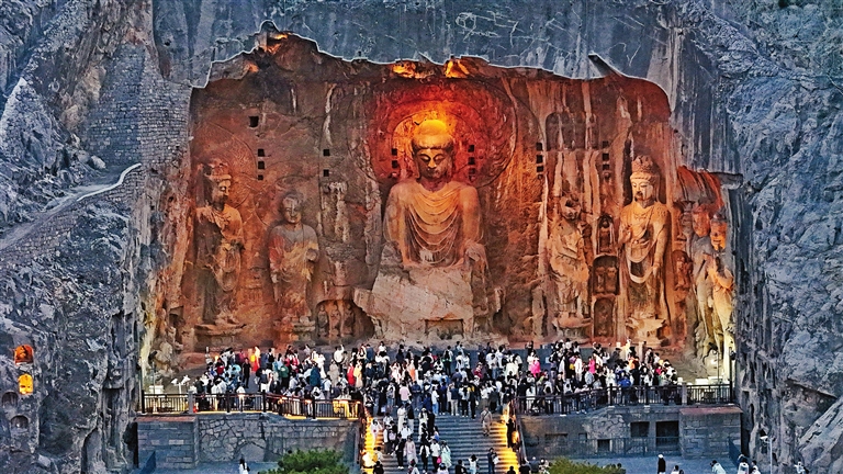 伊河潺潺,两岸崖壁镌刻着千年信仰与艺术。