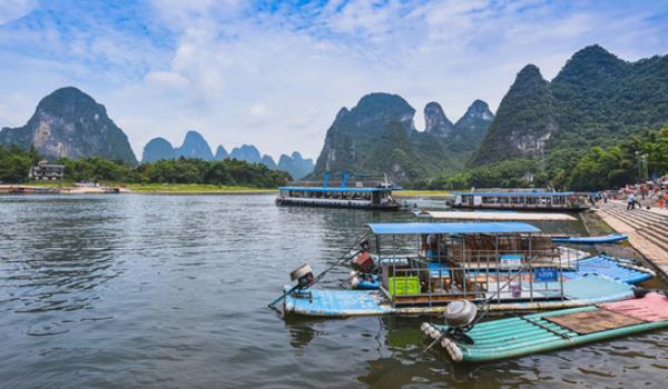 漓江和遇龙河都是中国桂林漓江风景区内的著名景点,但它们的坐船体验略有不同。