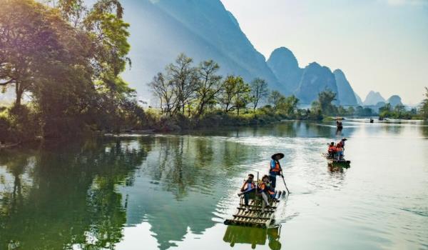 阳朔是桂林市区南部的一个小镇,距离市中心约70公里。阳朔有许多美丽的自然景观,如的十里画廊、遇龙河、银子岩、月亮山等。在阳朔,你可以选择骑自行车或坐竹筏游览,欣赏桂林山水的美丽。