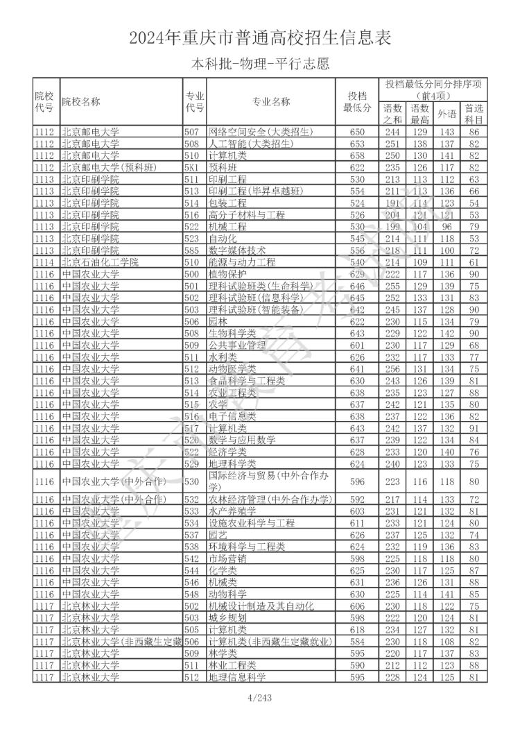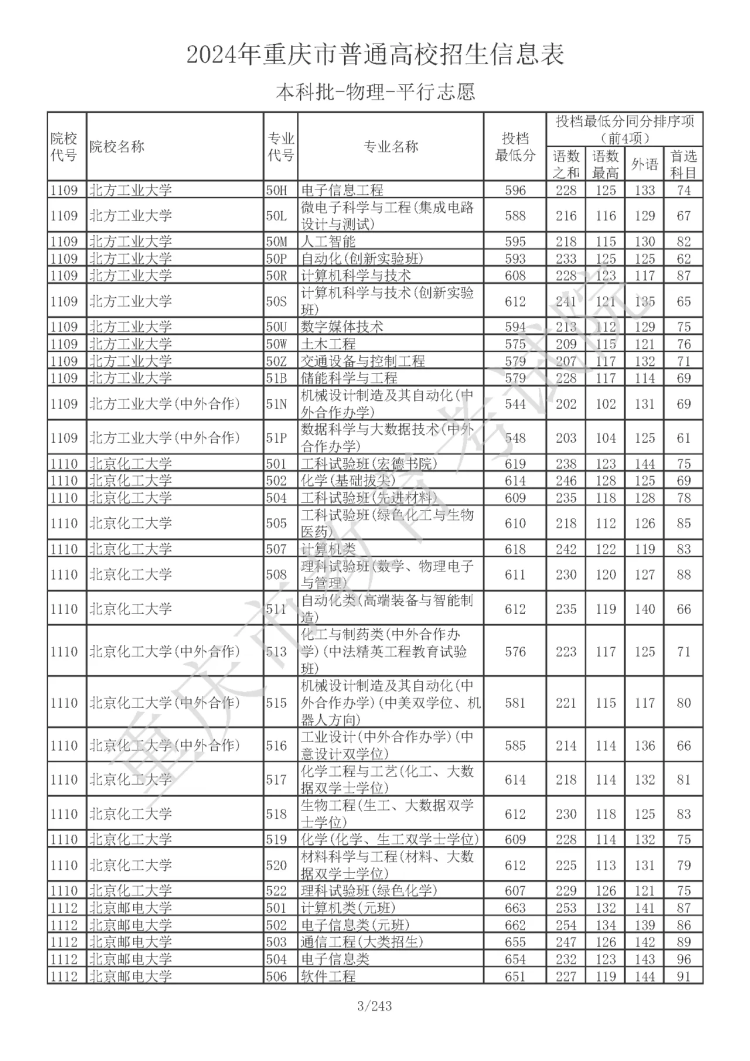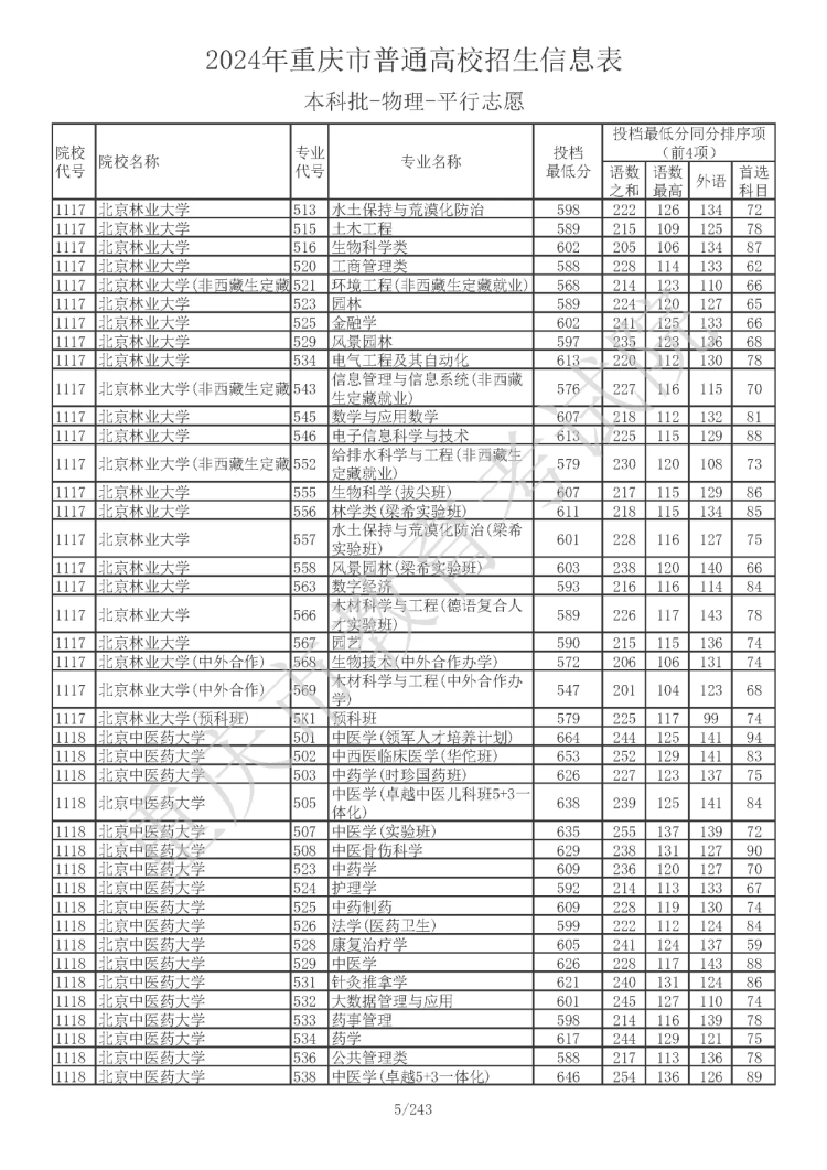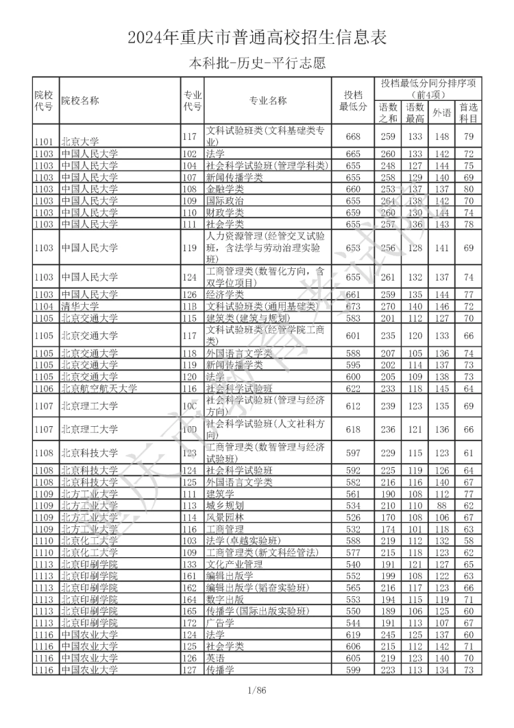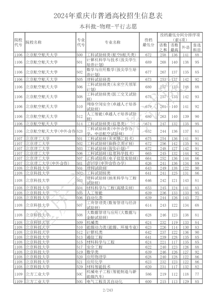 7月21日,重庆市教育考试院公布了2024年重庆市普通高校招生信息表普通类本科批(物理、历史)的部分院校招生信息。清华大学物理类最低投档线为699分,历史类673分;北京大学物理类最低投档线为699分,历史类668分。