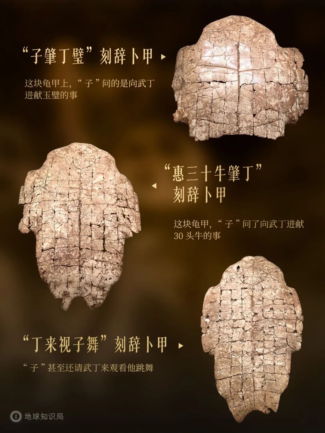 “子”的问卜事项包括祭祀、军事、田猎、贡纳、宴飨、天气,以及入学、乐舞、射箭、御马、疾病等众多方面。这些甲骨,堪称“子”的日记本。