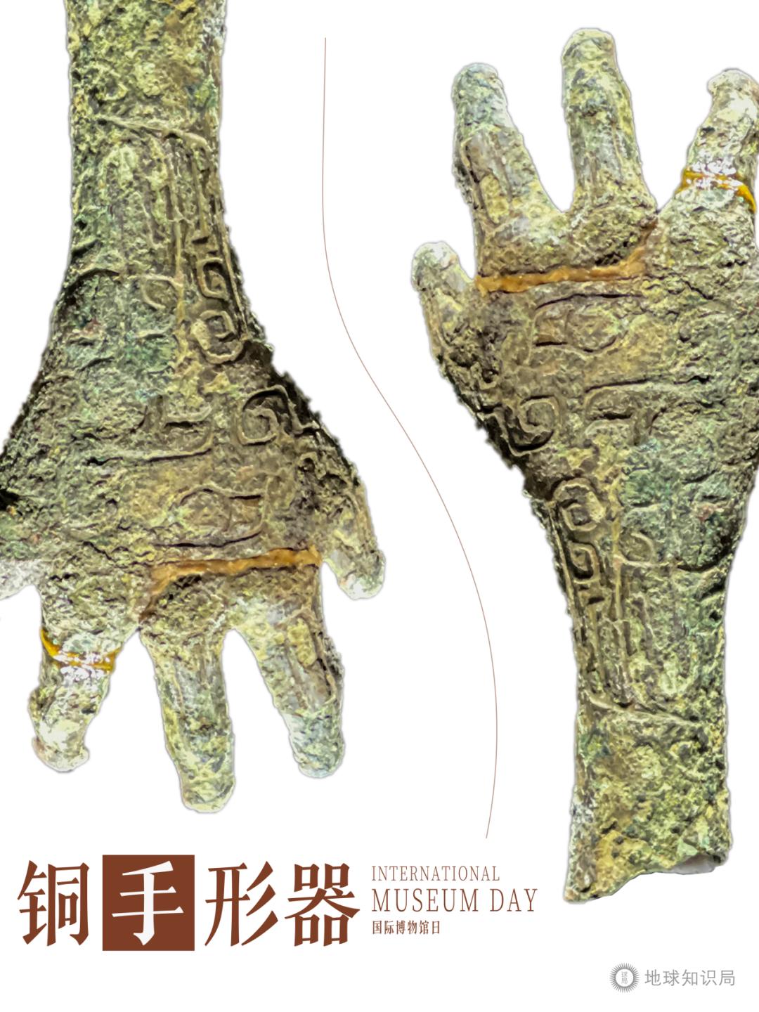 亚长墓还出土了一件令人费解的文物——铜手。这是一只右手,比一般成人手略小,造型非常逼真,关节清晰,指尖圆滑,指甲微露,手腕截面内部残留有碳化的木柄。