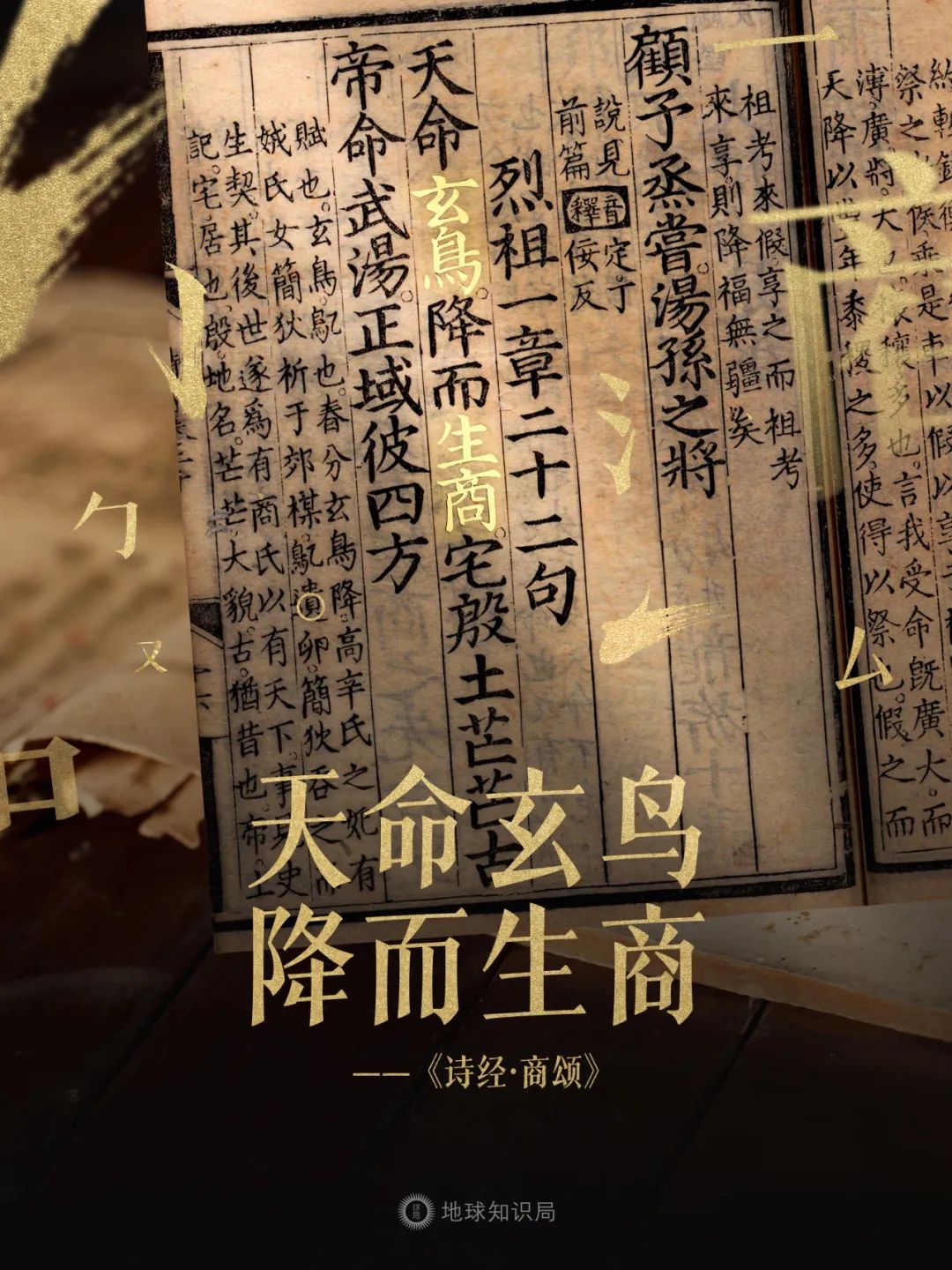 《诗经·商颂》中有“天命玄鸟,降而生商,宅殷土芒芒”的诗句▼