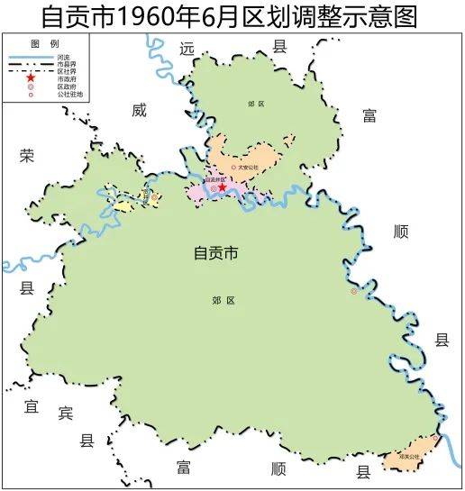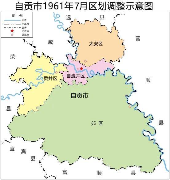 1960年11月起,自贡市行政区划多次进行调整,原属自流井、贡井、大安3个区的农村地区陆续从郊区划归三个区。
