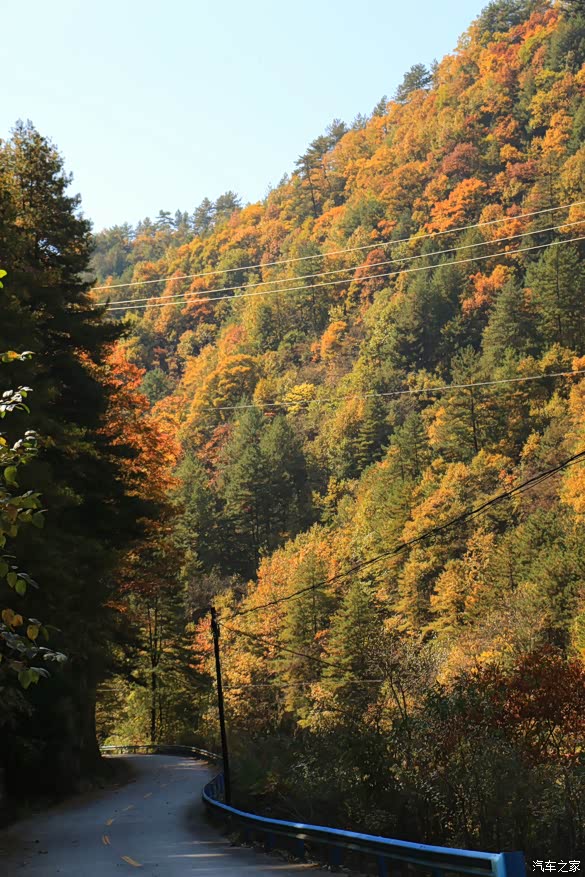 关池路走到和月太路的交叉口后转月太路,走上月太路,才是真正能够感受到秦岭的秋意,开车行走在其间,就像行走在一条天然的画廊中,经常忍不住要下车驻足欣赏。