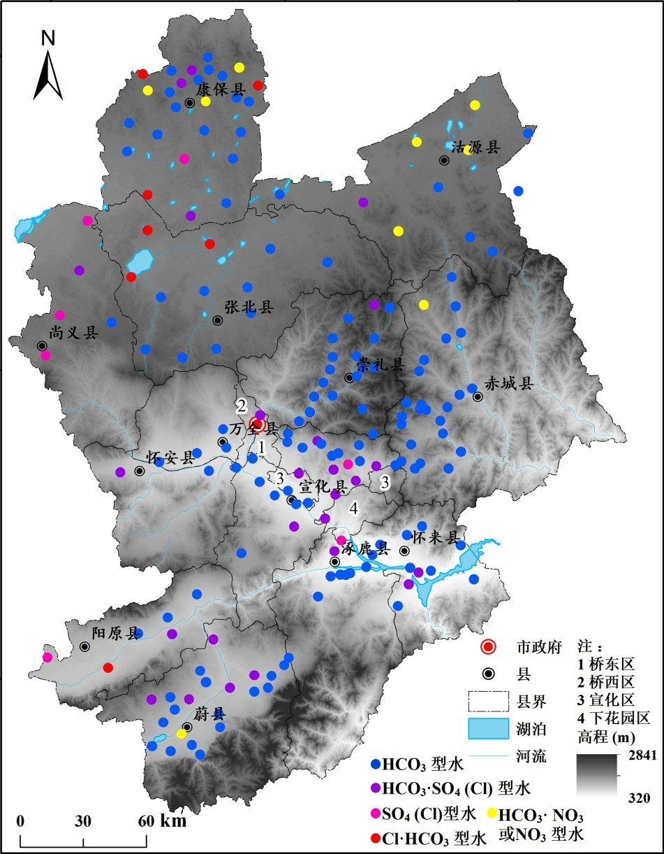 Fig.5 Distribution characteristics of groundwater chemical types in Zhangjiakou area