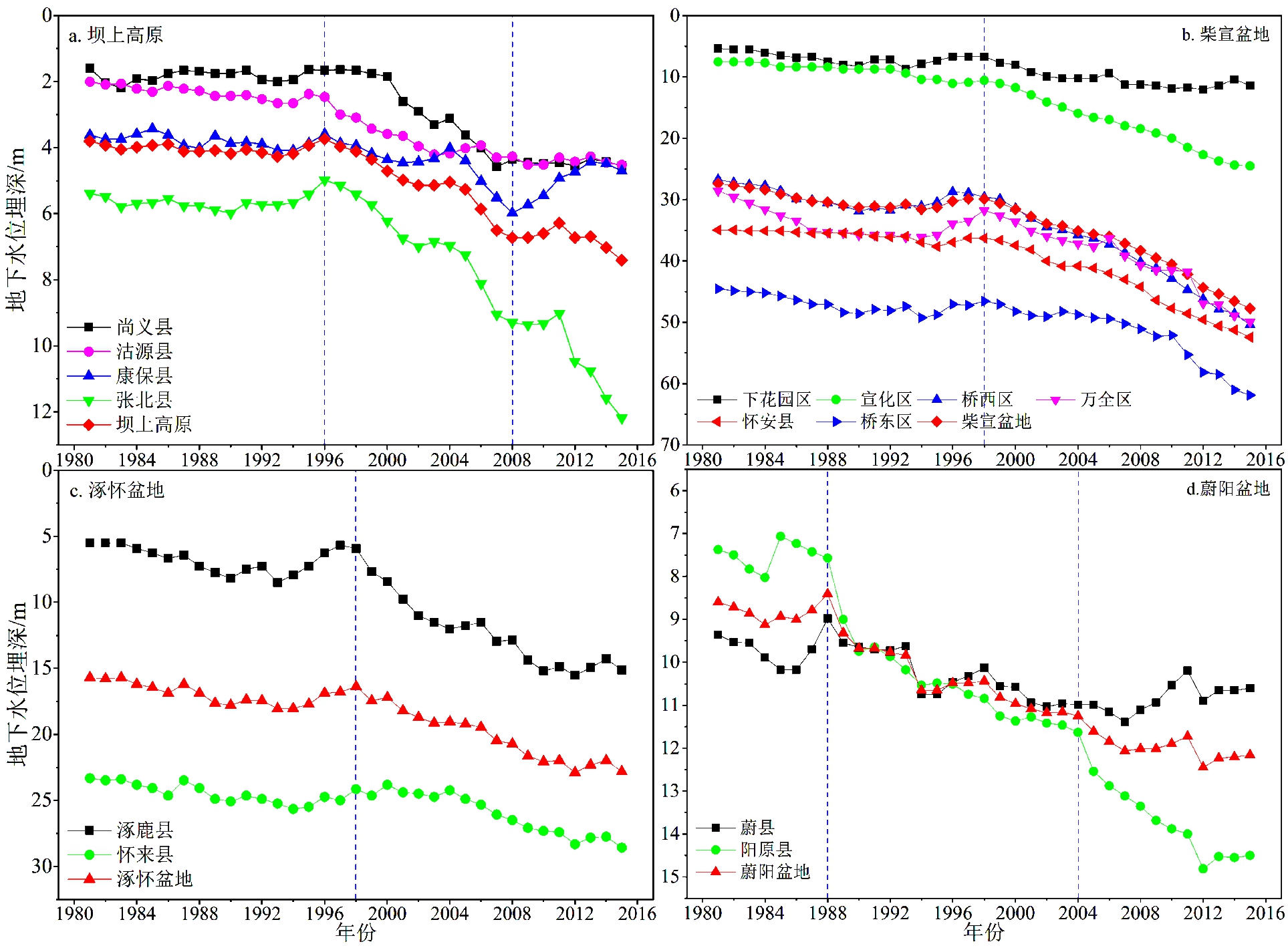 图3 张家口地区不同地貌单元1981~2015年地下水位动态变化[30]